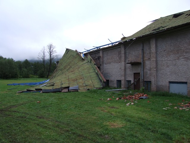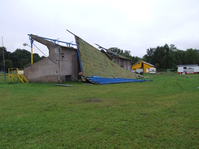 V priebehu 20tich minút sa strhla silná búrka s vetrom práve, keď balili svoje veci. Zo zadnej steny štadiónovej tribúny mali ešte odparkované jedno osobné auto, našťastie v tej chvíli tam nikto nebol. Silný nárazový vietor v okamihu zuroloval najmenej polovicu strechy hlavnej tribúny a prikryl ňou aj opustené auto.