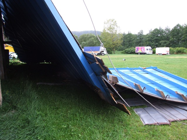 Pri pohľade na obrovsku konštrukciu strechy sa nechce veriť, že ju neviditeľná sila dokázala odtrhnúť a zhodiť za tribúnu a že sa pritom všetkom nikomu nič nestalo, keďže práve tam mali svoje vyhradené miesto autá a ľudia z odchádzajúceho cirkusu Tony.