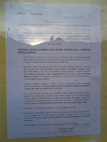 Text vyhlášky voľby hlavného kontrolóra na webovej stránke obce Štítnik si prečítate kliknutím sem.