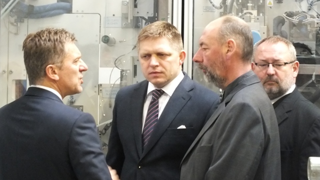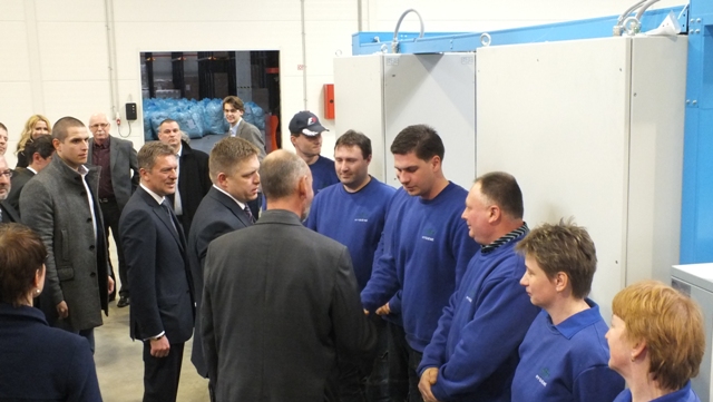 „Pracujem tu od januára, sú tu dobré pracovné podmienky, páči sa mi tu,“ pochválil sa Jozef Karafa, jeden z prvej dvadsiatky zamestnancov firmy, ktorých pozdravil premiér aj podaním ruky.