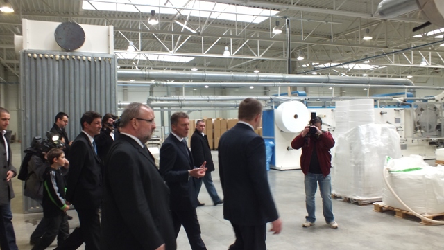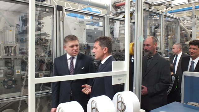 Po krátkych príhovoroch, v ktorých premiér neopomenul ani prítomného exprimátora Vladislava Laciaka, si hostia a pozvaní účastníci slávnosného otvorenia prezreli závod, ktorého ročný obrat má dosiahnuť 15 mil. eur. Hygienické produkty budú smerovať predovšetkým do západnej a strednej Európy, menšia časť do Ruska. Ako nám potvrdil Zoltán Kovács, riaditeľ novootvoreného výrobného závodu, prvý kamión s vlastnými výrobkami už vypravili.