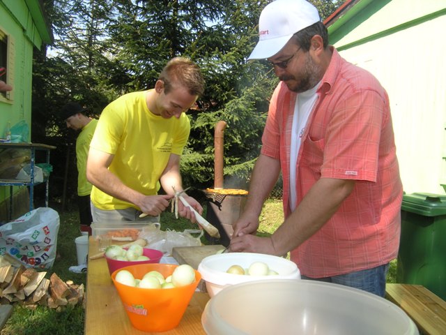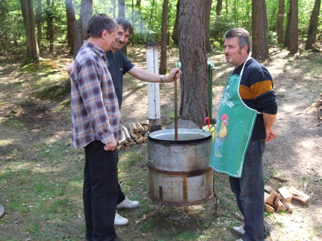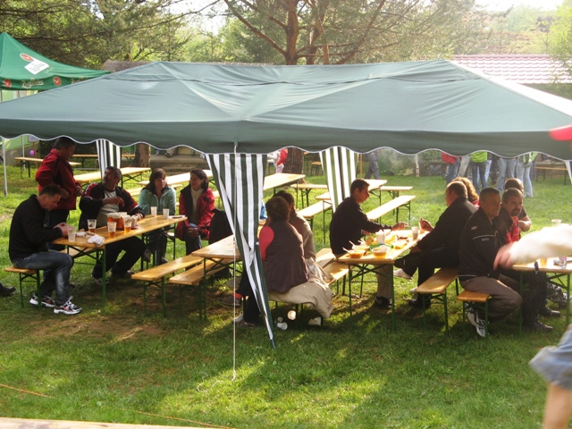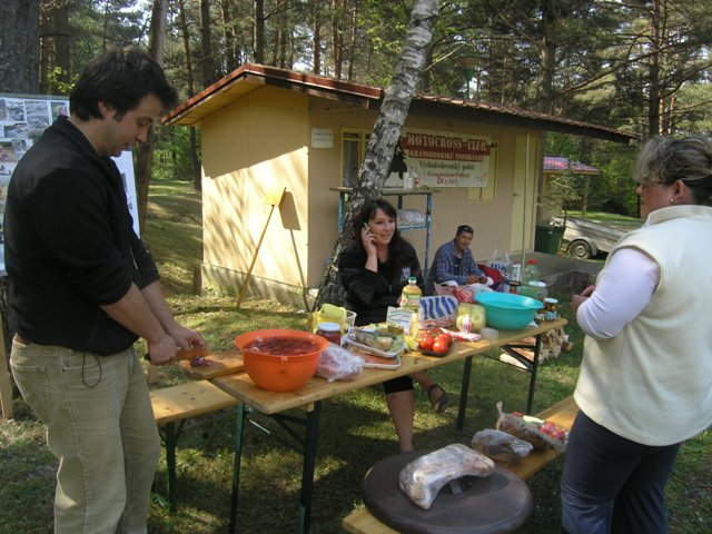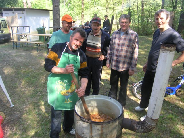 Oslavy sviatku práce pokračovali po ukončení retrosprievodu v areáli miestneho kempingu, kde medzičasom usilovne zvŕtali kuchári a ich pomocníci zvolení jednotlivými klubmi a organizáciami, aby ich zastupovali v súťaži vo varení guláša.