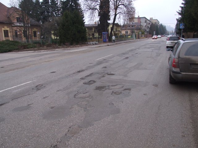 Na uvedených cestných úsekoch, ktoré sú vo vašej správe, existujú rozsiahle a hlboké výtlky, ohrozujúce bezpečnosť premávky a hrozí aj vznik veľkých škôd na motorových vozidlách, ktoré po nich premávajú. Namiesto toho, aby ste zabezpečili kvalitnú priebežnú opravu týchto výtlkov existujúcou zimnou technológiou, sme svedkami ich občasného zasypávania štrkodrvou, ktorá po prejazde dvoch-troch vozidiel je z výtlkov vytlačená naspať na vozovku a neplní svoj účel.