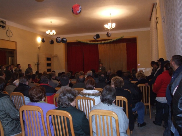 Dlho očakávaný predvolebný míting Štefana Szarku sa niesol v znamení  podivnej atmosféry. Kritické otázky versus obrana z radov divákov.Väčšina voličov bola zvedavá práve  na toto stretnutie, väčšina prítomných očakávala siahodlhú diskusiu a  konfrontáciu, tá sa však nekonala. Otázky od občanov sa týkali nezrealizovanej kanalizácie na ulici Pokrokovej, nevysporiadaných stavieb v rómskej osade, nemožnosti kultúrneho vyžitia mládeže, projektov.