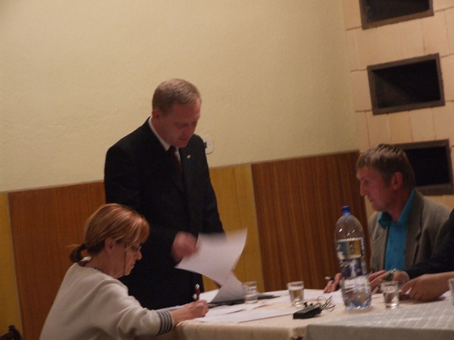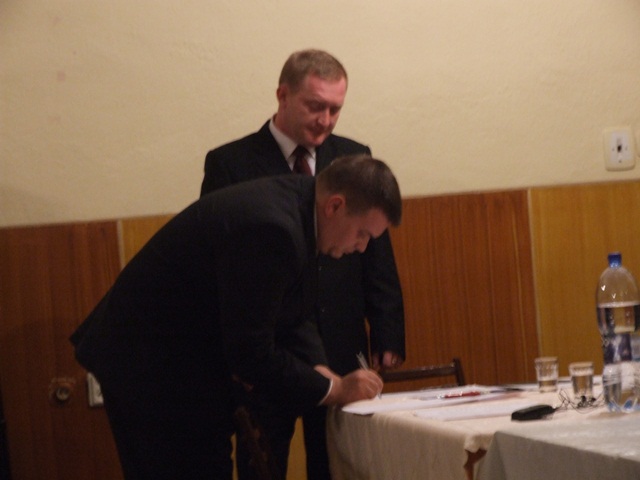 Novozvolený starosta i poslanci zložili za početnej prítomnosti obyvateľov zákonom predpísaný sľub. Chvíľu po zložení sľubu nastupujúci starosta Peter Bollo poďakoval odchádzajúcemu za 25-ročnú prácu a zásluhy a daroval symbolický dar v mene svojom i v mene poslancov. Vzápätí sa Štefan Szarka rozlúčil a zasadnutie opustil.