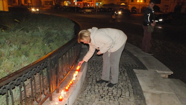 Nežnú revolúciu si prišlo o 17-tej hodine postupne pripomenúť zapálením sviečok pri pamätníku Františky Andrássyovej na Námestí baníkov asi 50 ľudí.