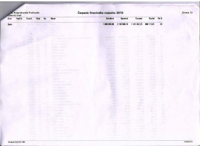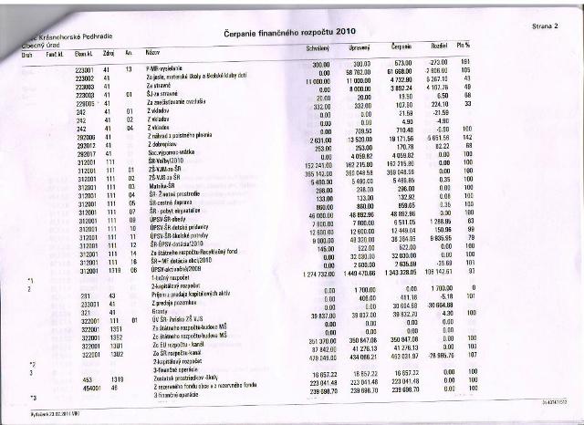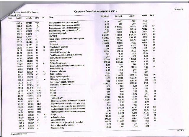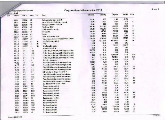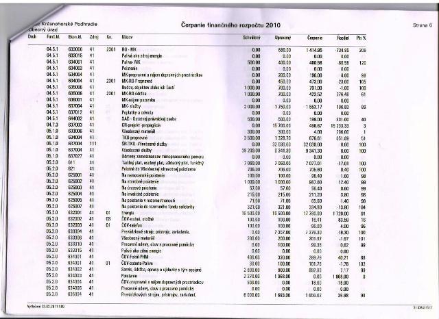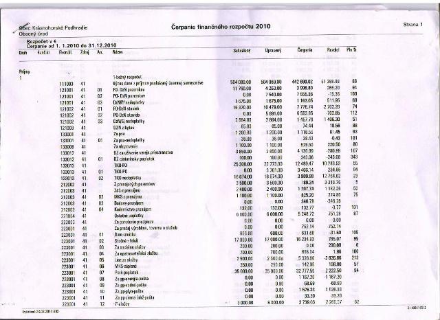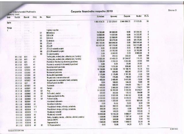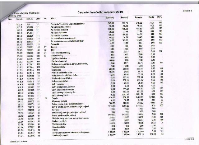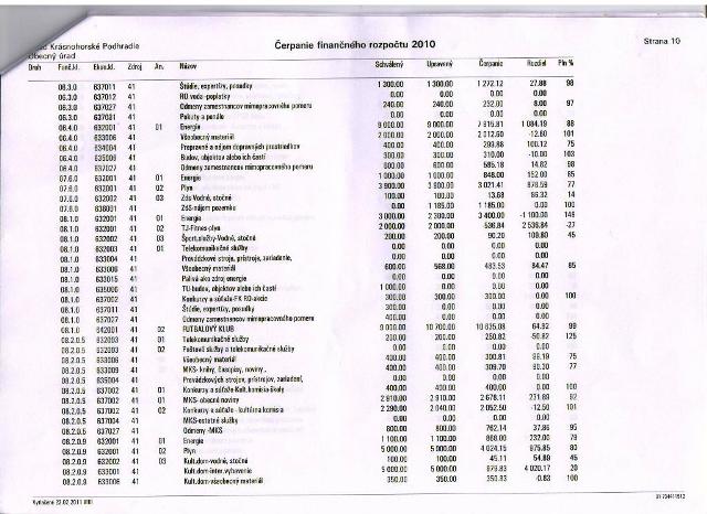 Čerpanie rozpočtu za r. 2010: