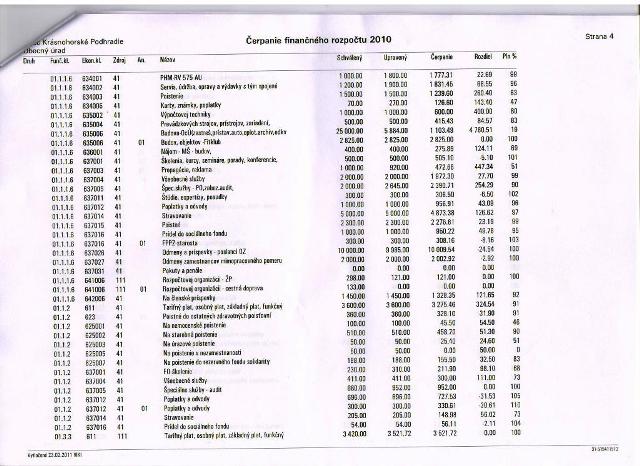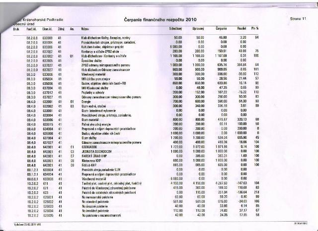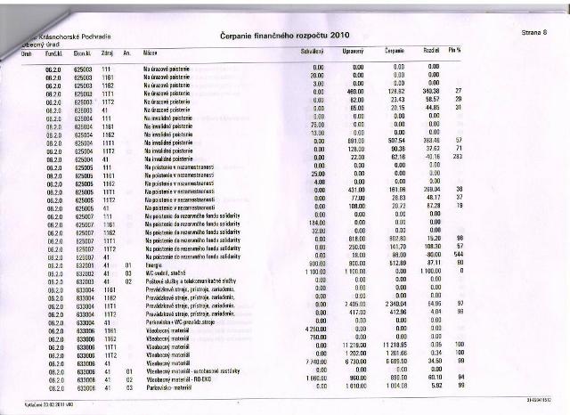 Samotný prehľad čerpania príjmov za rok 2010 dostali poslanci i členovia komisie 2 x, v mesiaci január pred prvým pracovným zasadnutím OZ a vo februári pred stretnutím členov komisie. Neboli identické. Jeden pripravený bývalou pracovníčkou ekonomického úseku, druhý zas novou posilou.
