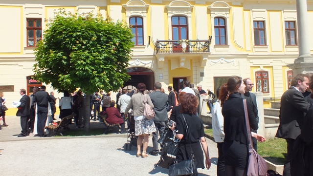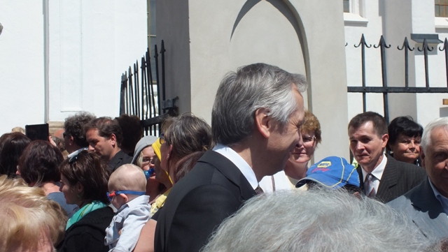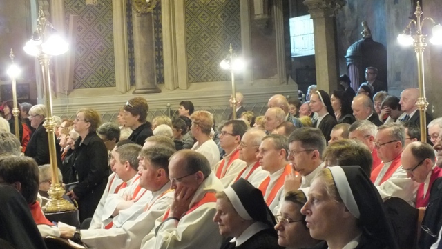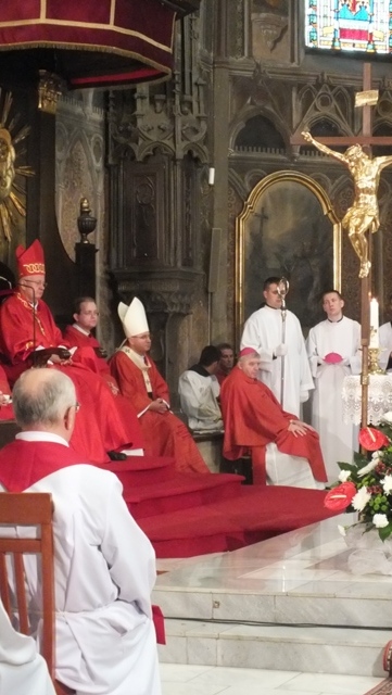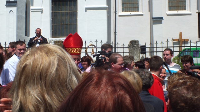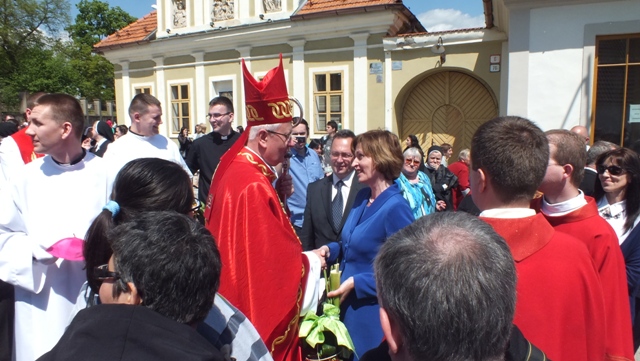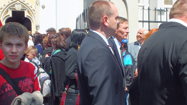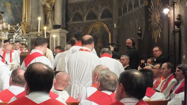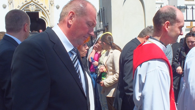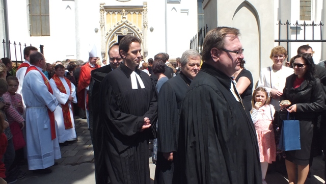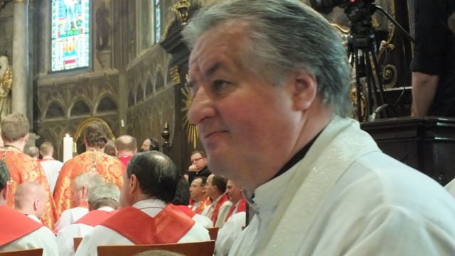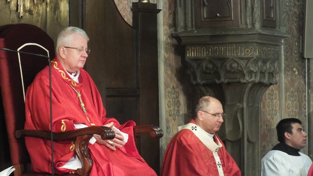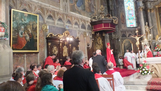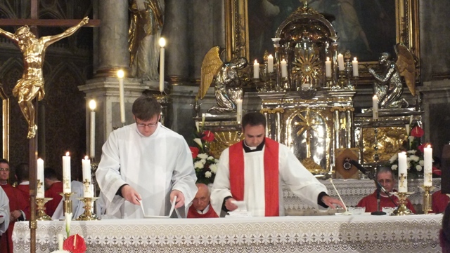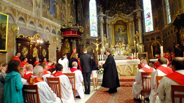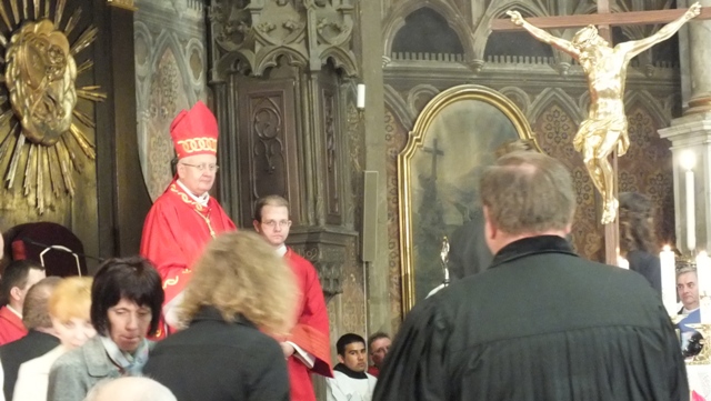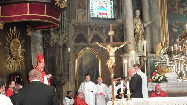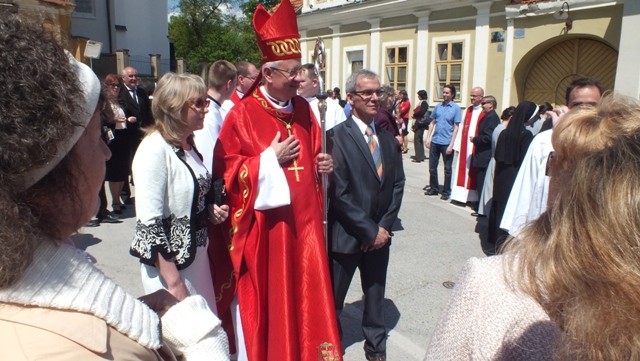 Mons. Stanislav Stolárik, rodák z Rožňavy, kde sa narodil a bol pokrstený, prebral úrad diecézneho rožňavského biskupa po Mons. Vladimírovi Filovi, ktorý počas dnešnej slávnosti v katedrále sedel v jeho blízkosti.