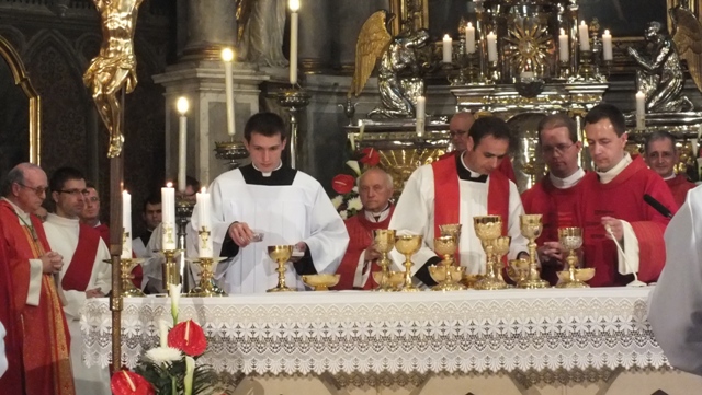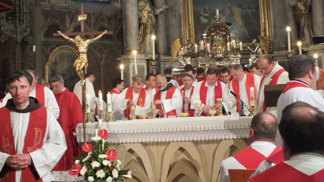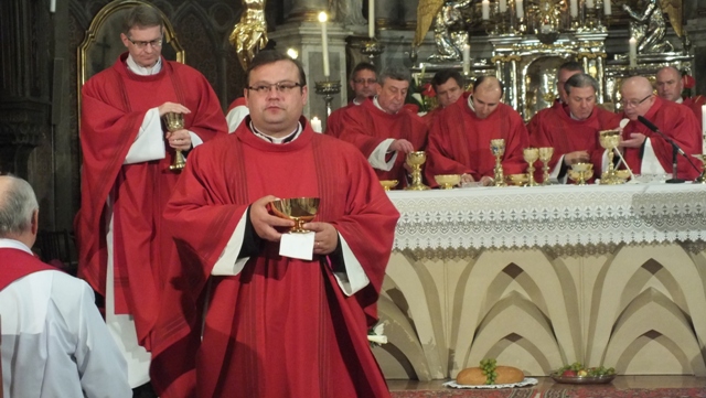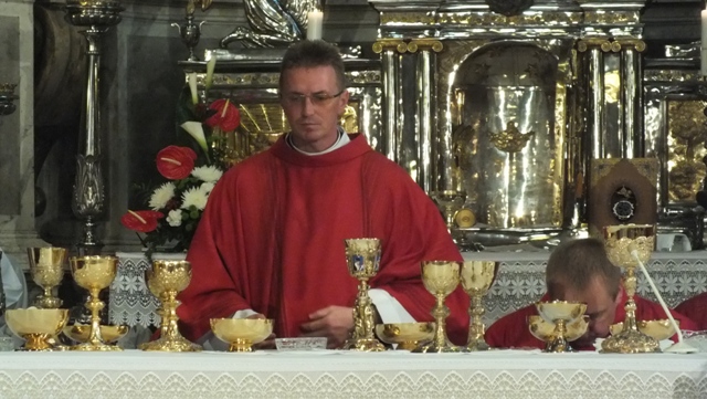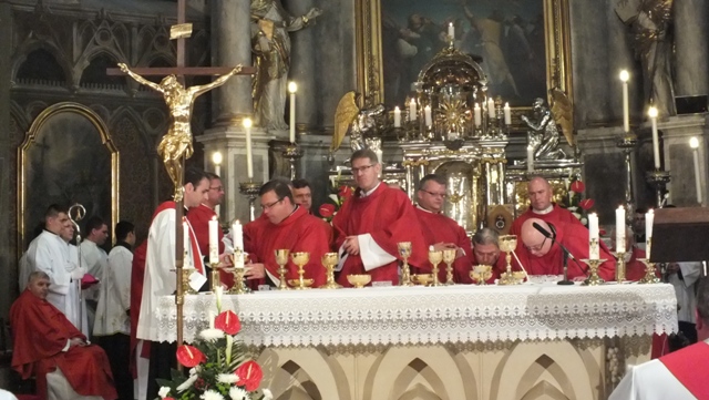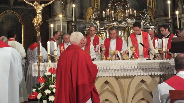 Biskup Stolárik v homílii povzbudil najskôr kňazov. Poďakoval im za ich vytrvalosť a vernosť v kňazskej službe a pozval ich k modlitbe a adorácii v ich farnostiach.