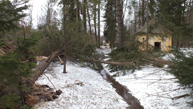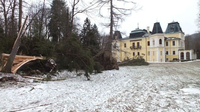 DSCF1127Silný vietor zo štvrtka na piatok pozrážal stromy aj v známom parku pri kaštieli v Betliari. Stromy padali tesne vedľa budov, vrátane tej vstupnej, chodníky ostali zatarasené. Za obeť víchrice ich padli desiatky.