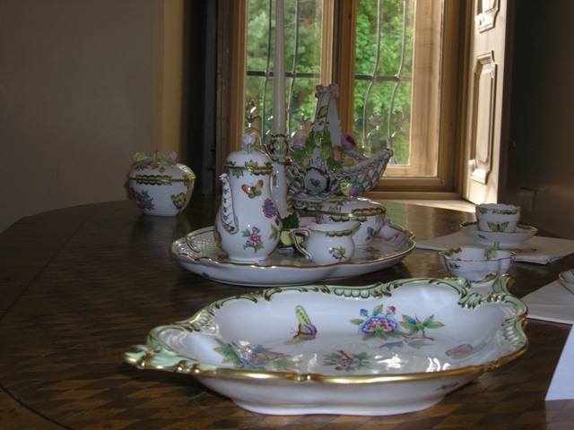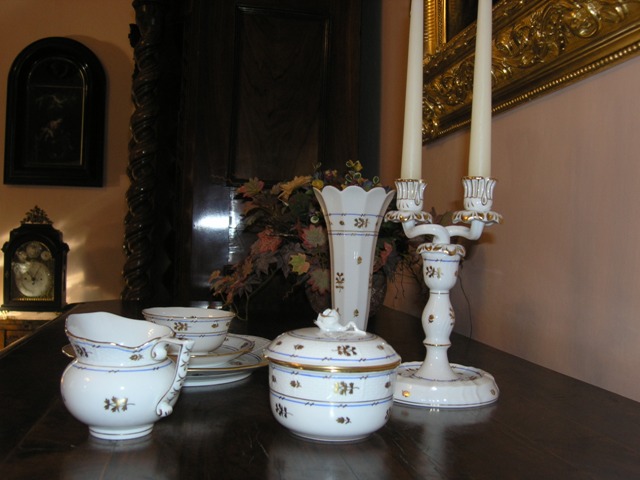Výstava pripomínajúca životný štýl aristokratov prostredníctvom porcelánových výrobkov z dielne v Herende prezentuje rôzne nádoby, stolovacie súpravy s patinou, ako aj jednotlivé kusy s monogramami zákazníkov. Vo vystavenej kolekcii sú zastúpené typické rekvizity aristokratického inventáru, akými boli kalamáre, posypadlá, dózy na písacie potreby, škatuľky na hracie karty, rukoväte dáždnikov, jedálenské príbory s porcelánovou rúčkou, ktoré sa vyrábali z „bieleho zlata” výlučne na objednávku.