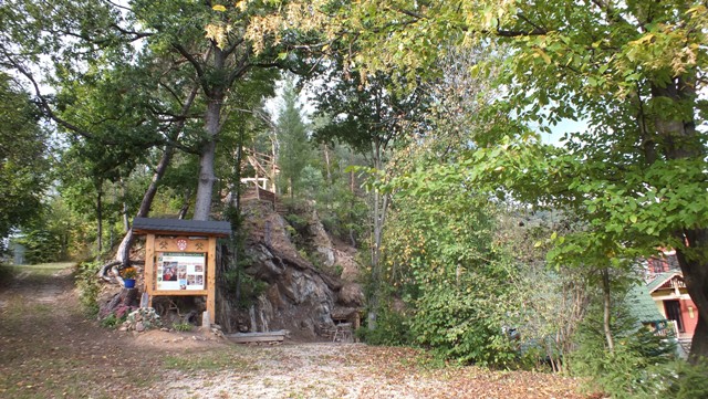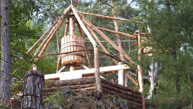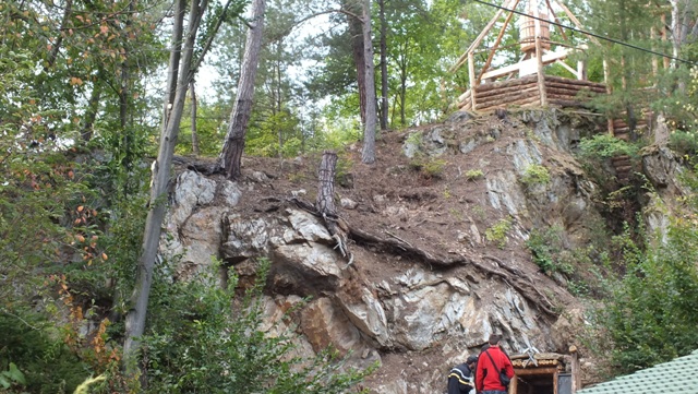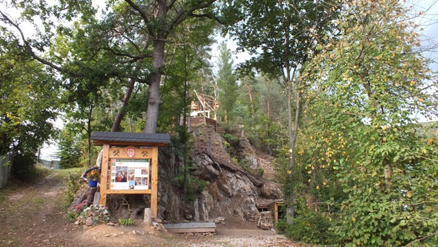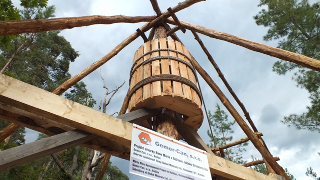 Vydarená imitácia drevenej stavby, postavená podľa slov starostu svojpomocne, je žiaľ celkom zbytočne „zdobená“ sponzorskou tabuľou firmy, snažiacej sa obnoviť ťažbu v Mária bani. Ako vysvetlil, tá prispela na pohostenie pre účastníkov konferencie, v ktorej programe bolo aj stretnutie pri tejto stavbe.