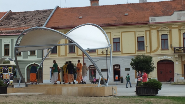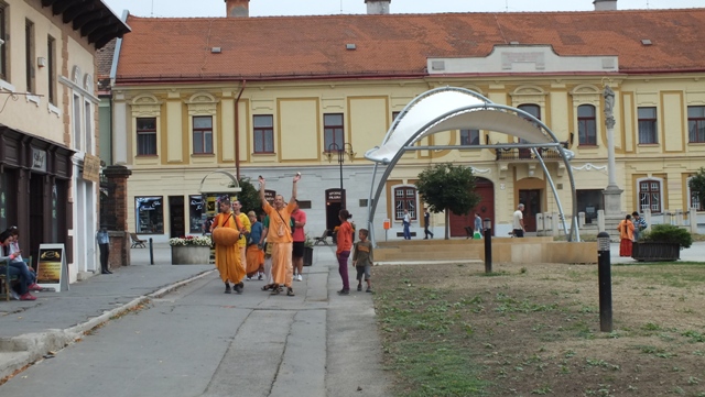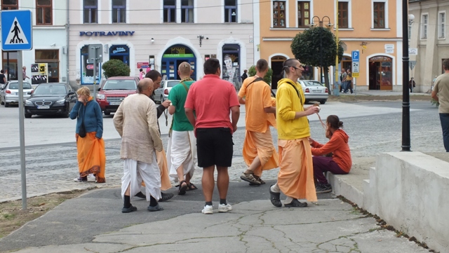 DSCF5618V utorok a v stredu znelo rožňavským Námestím baníkov „Hare Krišna“. Skupinka mladých usmiatych mužov, odetých prevažne v oranžových odevoch, si to zamierila aj pred neďaleký hypermarket, kde mali zaparkované svoje autá.