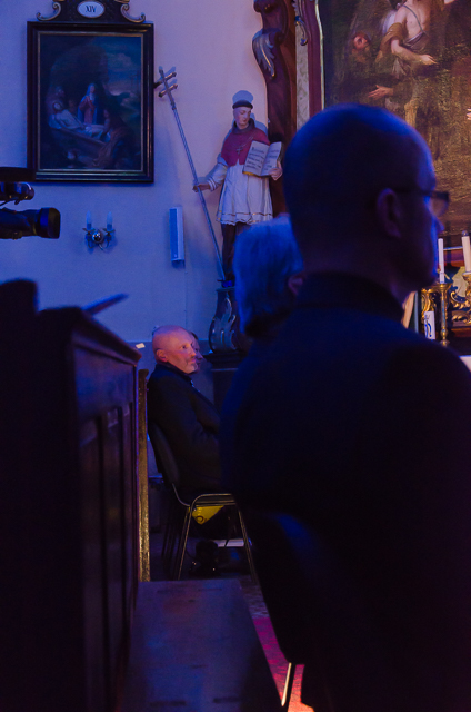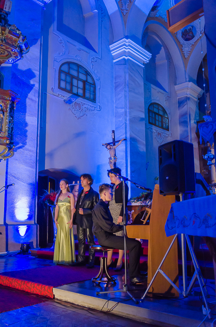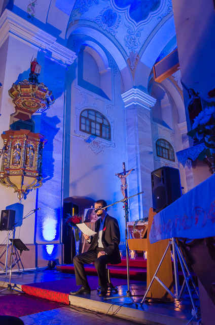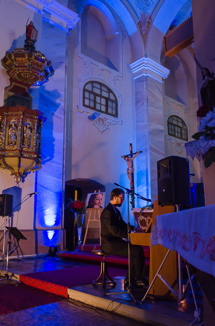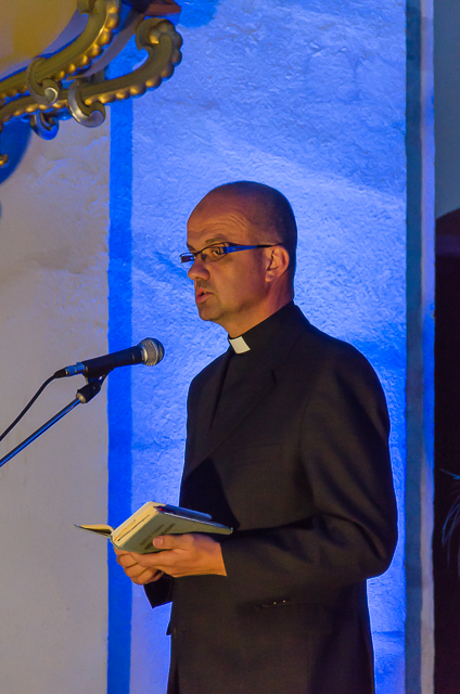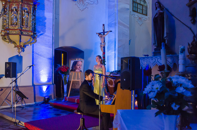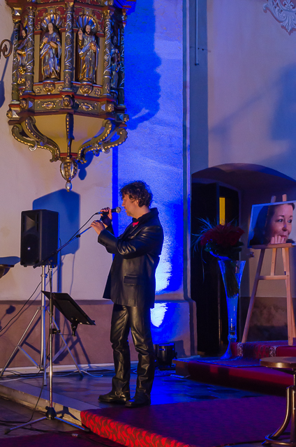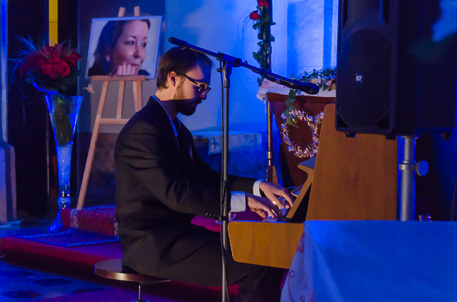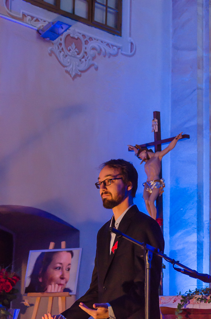Foto: infoRoznava.sk / Rudo Štober: Miklós Nyéki v závere koncertu prečítal Hymnus Lásky (Prvý List Korinťanom), slová sprevádzal na klavíri Alenkinou obľúbenou skladbou od Stinga „Every Breath You Take“.