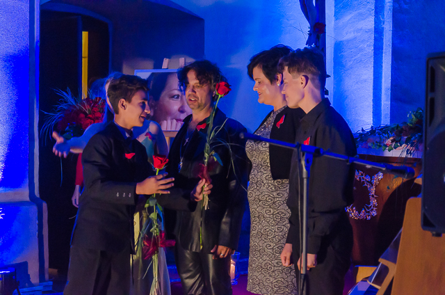 Kristián a Julka odovzdali ruže účinkujúcim – Alene Temesiovej, Štefanovi Hundžovi, Helene Pál Balážovej, Miklósovi Nyékimu, Petrovi Bálintovi, Jozefovi Markotánovi a Lille Izsóf