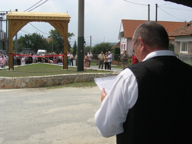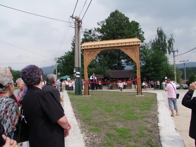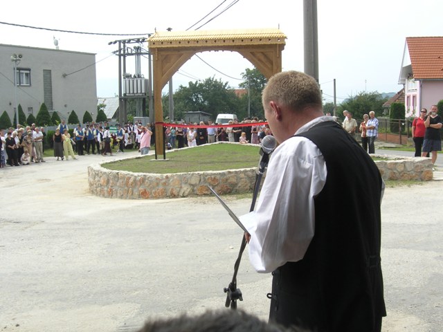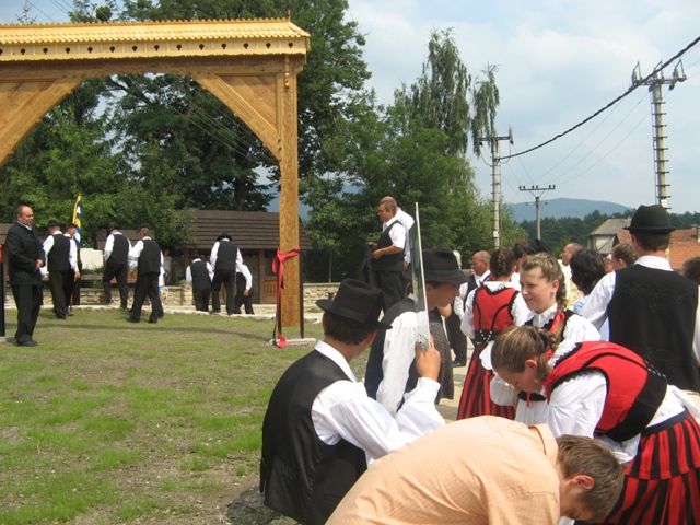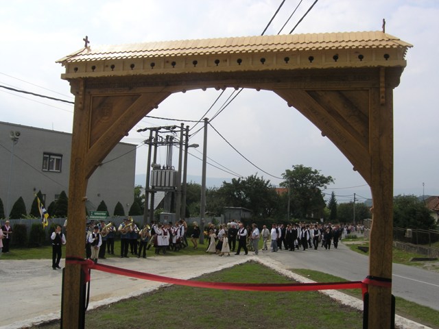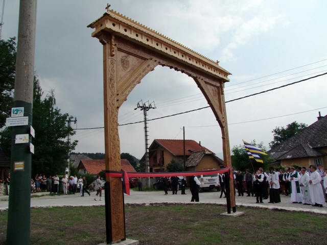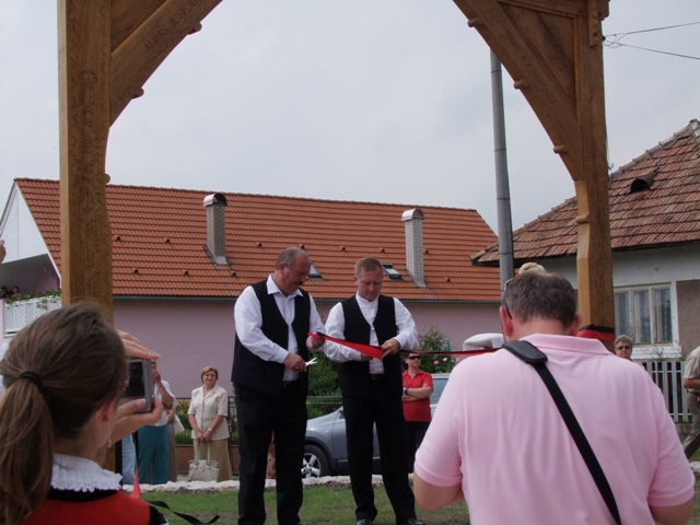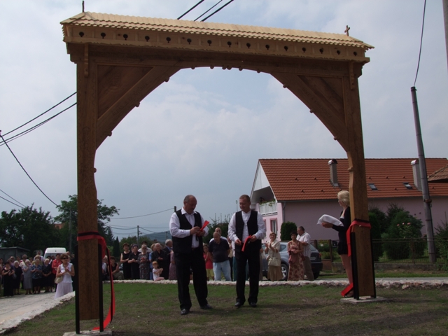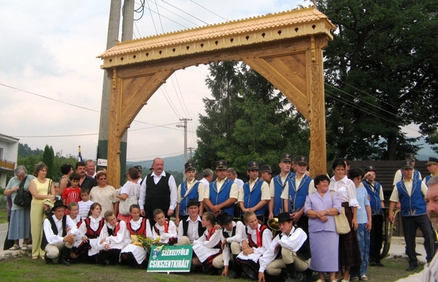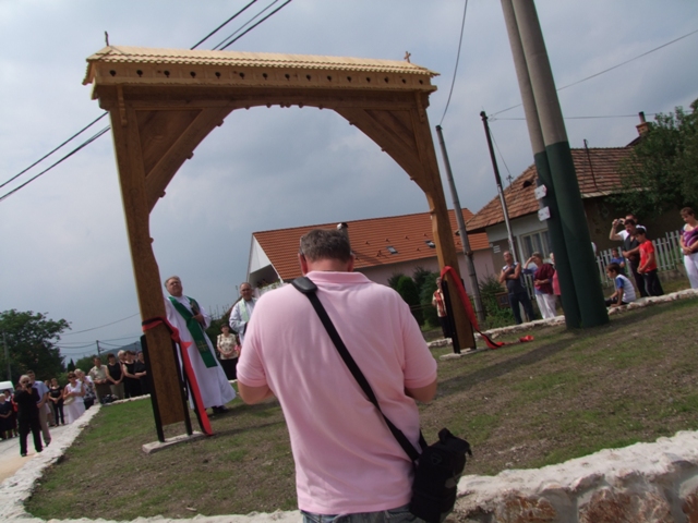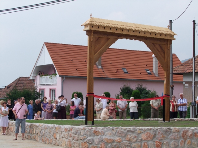 To, ako dlho trvá výroba takejto brány, prečo je „otvorená“, prečo sú na nej vyryté práve konkrétne nápisy, vám priblížime po doručení odpovedí z obecného úradu v Csíkszentkirály-i. Zatiaľ fotoreportážou približujeme samotný priebeh nedeľnej udalosti.