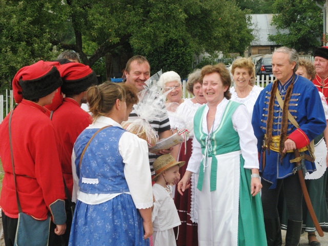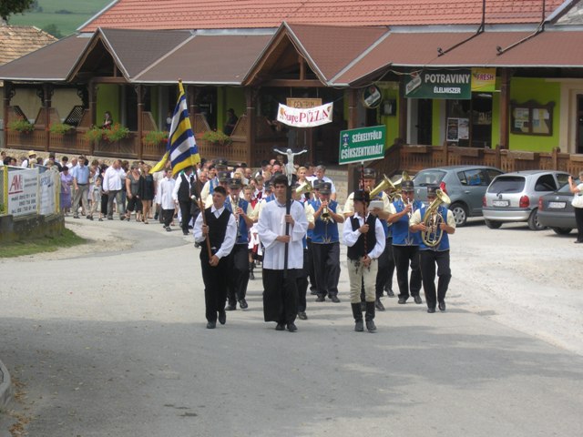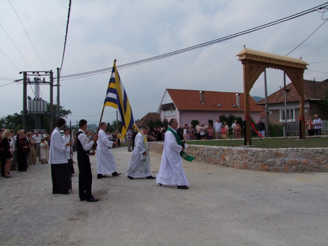 Slávnostnú omšu viedol za účasti miestneho kňaza Ľudovíta Jureka kňaz hostí z rumunskej obce v maďarskom jazyku. Požehnanie brány i príhovory domácich i hostí prebiehali v jazyku miestneho obyvateľstva a hostí. Spestrili ho tancom, dychovkou, ale i odovzdávaním darov a pamätných plakiet. Tie obdržali aj viacerí členovie miestneho mužského spevokolu za šírenie dobrého mena v zahraničí a budovanie vzťahov s predstaviteľmi družobných obcí z rúk starostu obce Csíkszentkirály.