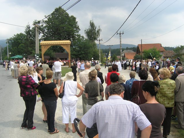 Brána bola dopravená do obce už týždeň pred príchodom hostí a osadená pár dní pred samotnou vysviackou. K tej došlo až v nedeľu po sviatočnej omši, ktorej sa na rozdiel od bežných nediel, keď v miestnom kostole nájdete iba pár skalných, zúčastnilo množstvo obyvateľov i predstaviteľov obce spolu s hosťami zo štyroch družobných obcí.