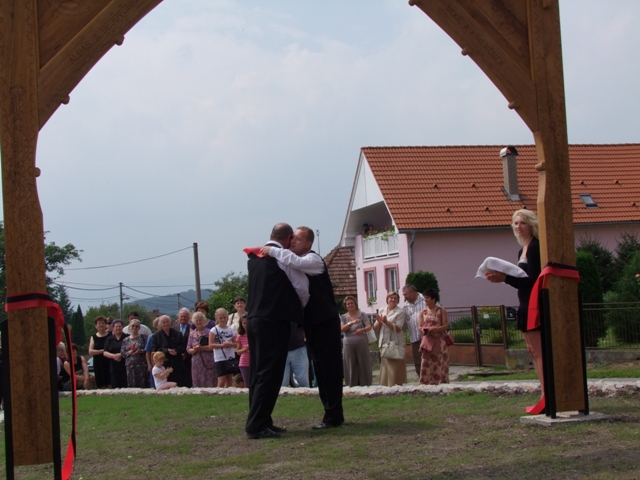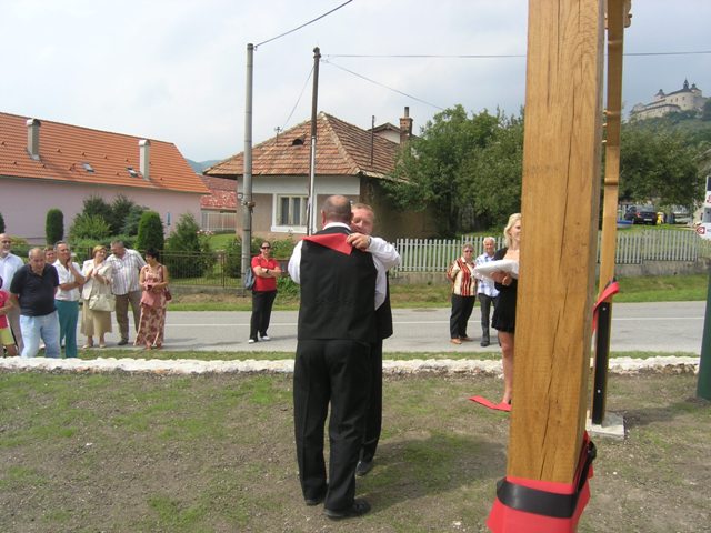 Ako poslední z družobných usadlostí obce Csíkszentkirály obdržali symbolický dar, drevenú bránu, tzv. Székelykapu, aj občania Krásnohorského Podhradia.