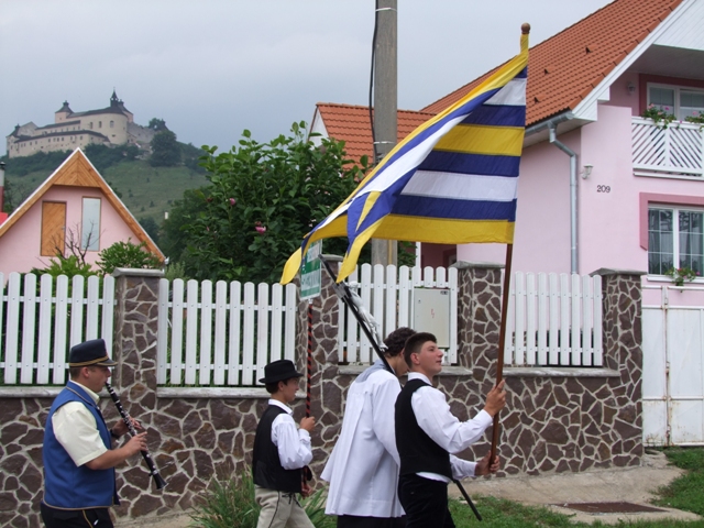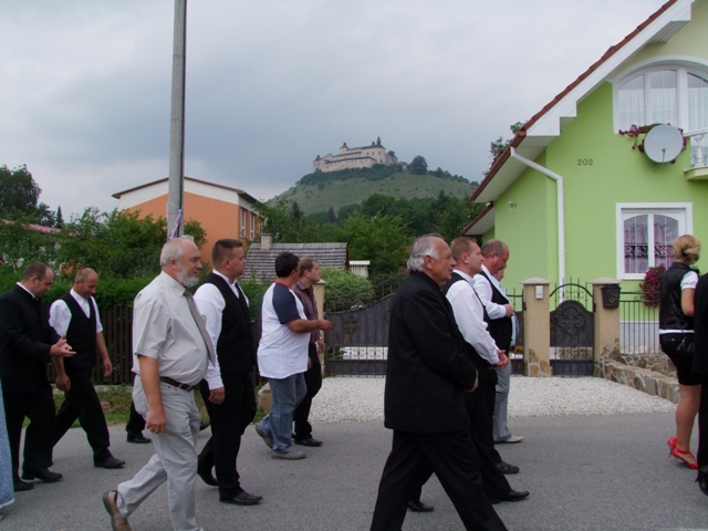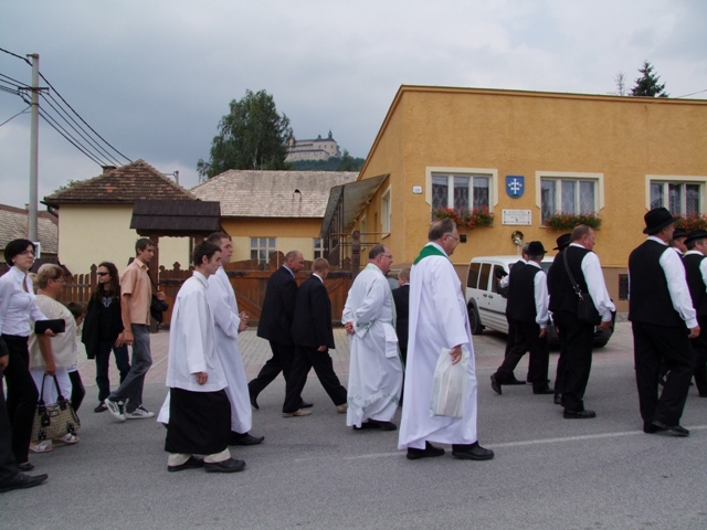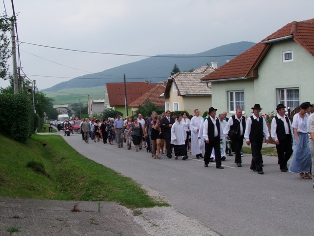 Po skončení omše sa sprievod s prítomnými i oboma kňazmi vybral naprieč dedinou až k bráne, ktorú občania dostali ako dar z družobnej obce, aby ju slávnostne odovzdali a požehnali.