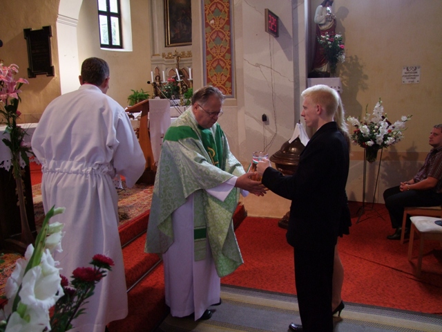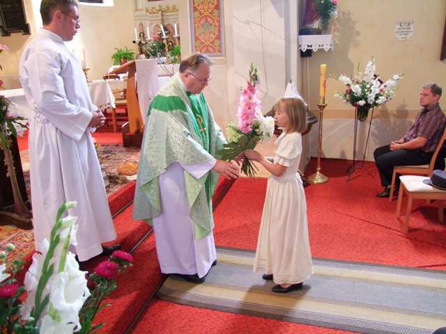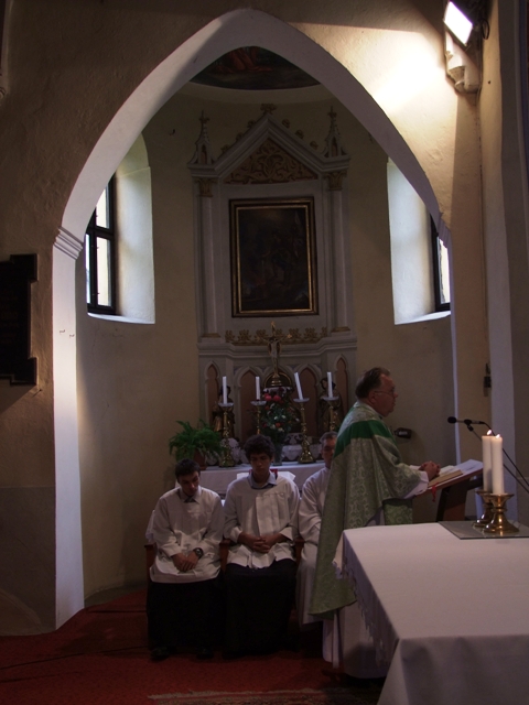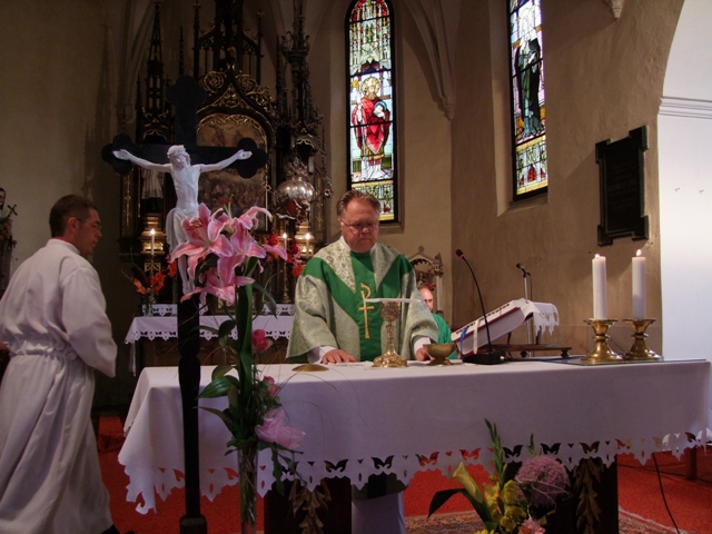 Slávnostnú nedeľnú omšu, ktorá začala o 11tej hodine predpoludním, celebroval za prítomnosti miestneho kňaza hosťujúci kňaz z rumunskej družobnej obce Csíkszentkirály.