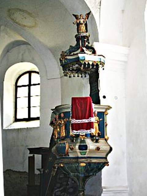 Návštevníkov hneď po vstupe do kostola môže zaujať dlažba z veľkých plochých kameňov, oltár a kazateľnica v slohu ľudového baroka, ale najmä empora (drevený chór na stĺpoch) pomaľovaná výjavmi z Biblie, medzi ktorými sa nachádza aj portrét cisára Jozefa II., syna Márie Terézie. Na bočnej strane empory sa zachoval nápis o jej vyhotovení s menom Pavla Šafáryho, otca Pavla Jozefa Šafárika, ktorý tu svojho času pôsobil ako kňaz.
